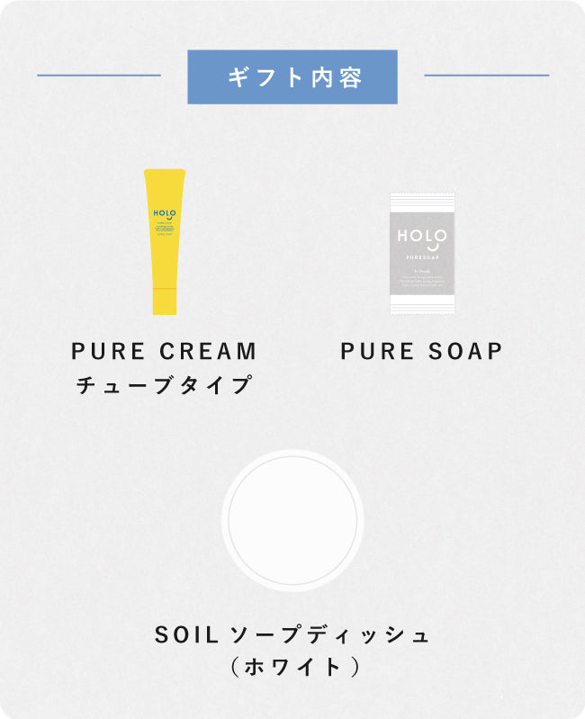 吸水性の高い自然素材珪藻土で作られたSoilのお風呂&洗面所用の石けんホルダーと、安心して使える低刺激の全身用保湿クリーム、石けんをセットにしたギフトボックス。お誕生日のお祝いやちょっとした贈りもの、妊娠・ご出産のお祝いなど、様々なシーンの贈りものとしてお使いください。